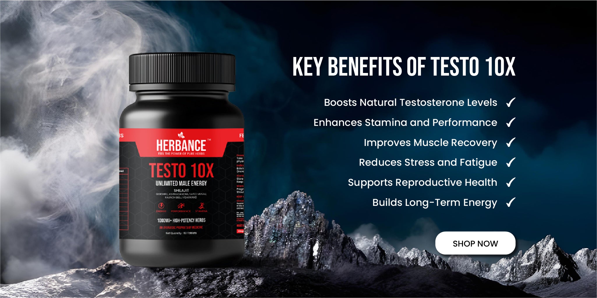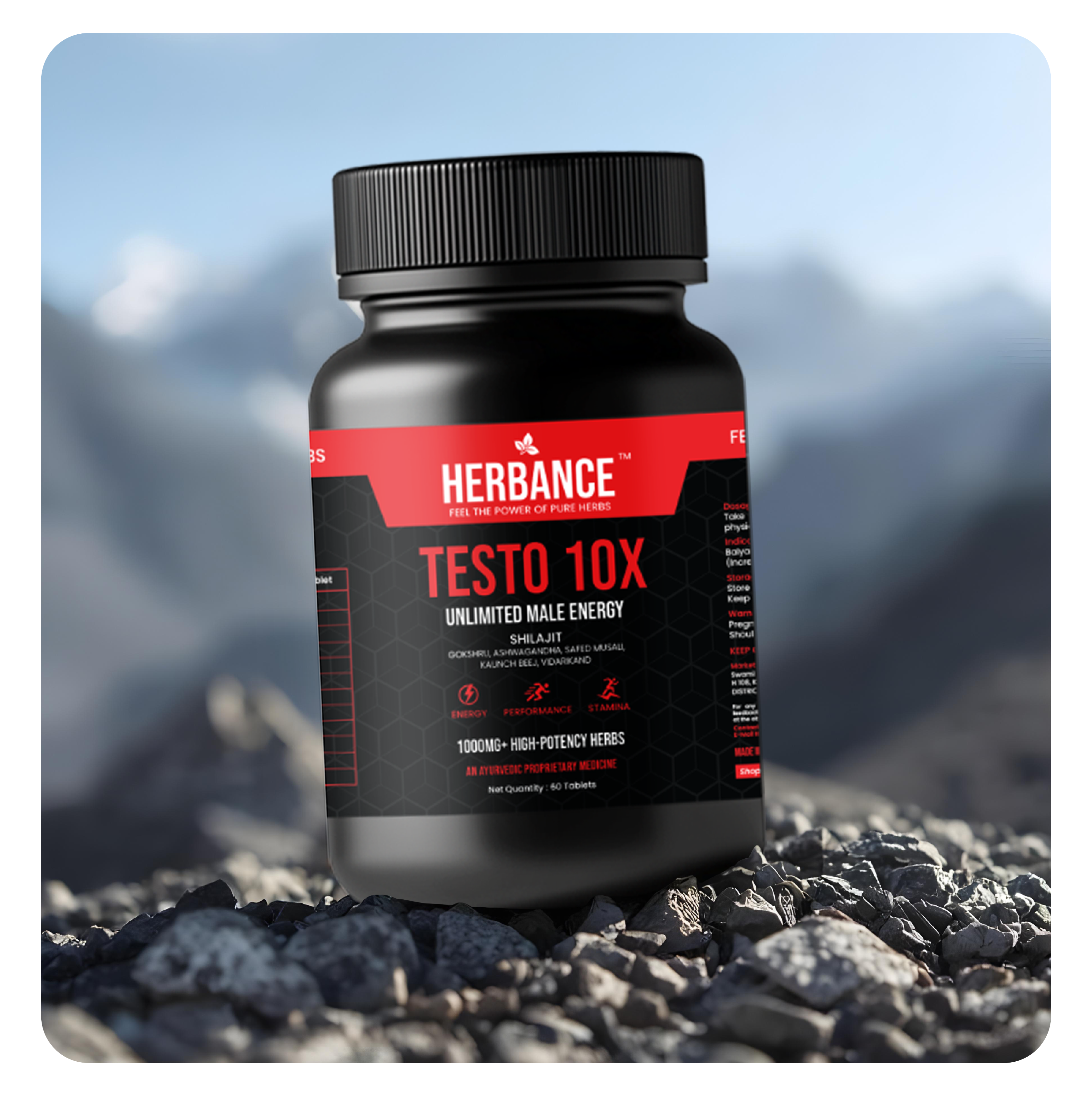 Testo 10X is our flagship Ayurvedic formulation designed to naturally boost testosterone levels, enhance vitality, and help men